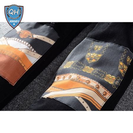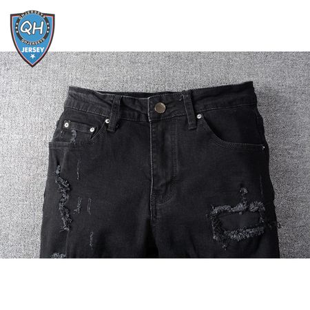 Amiri Chain Design Rip Jeans Black