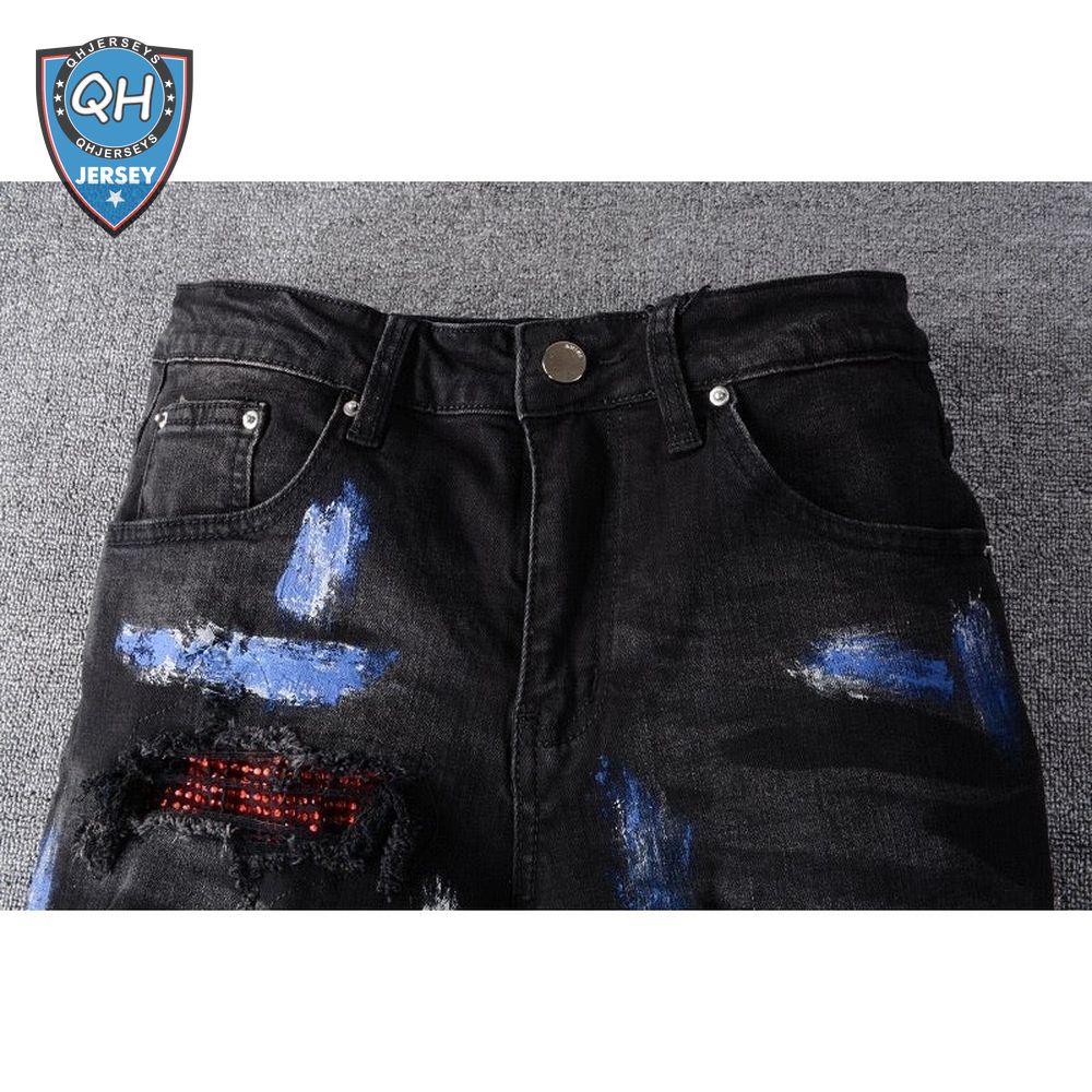 Amiri Rhinestone Splatter Jeans Black/Blue/Red