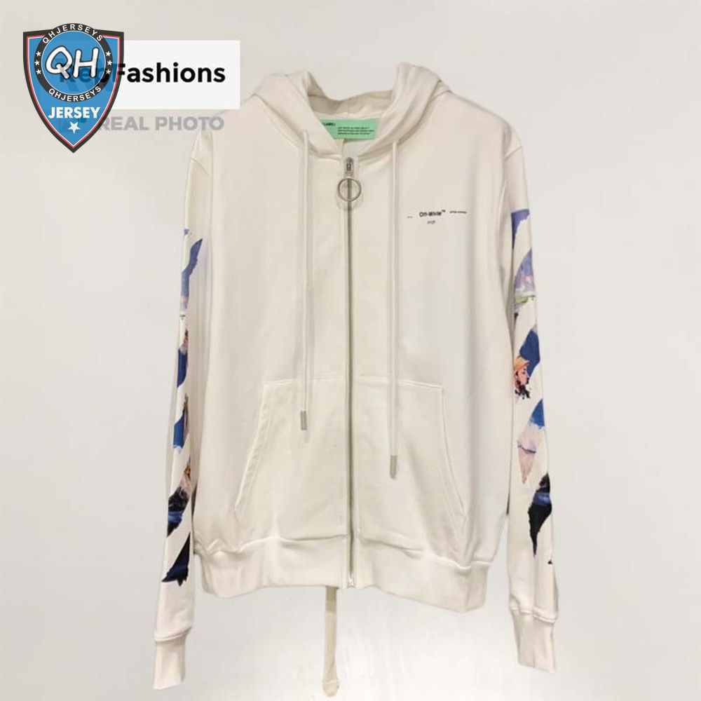 Off White Colored Arrows Zip Up Hoodie