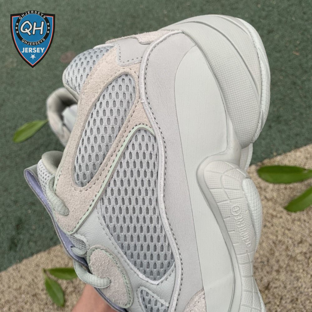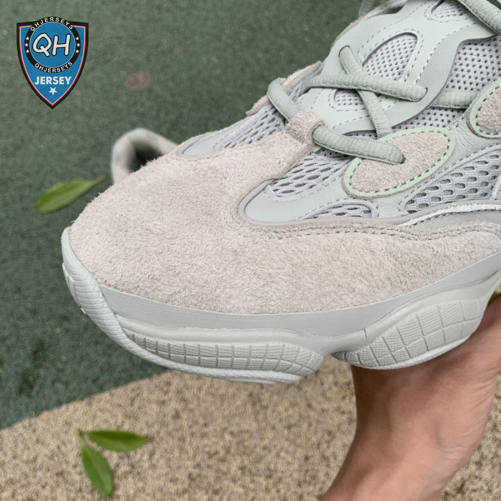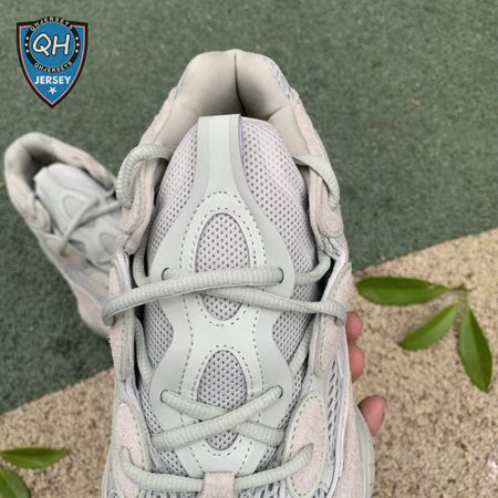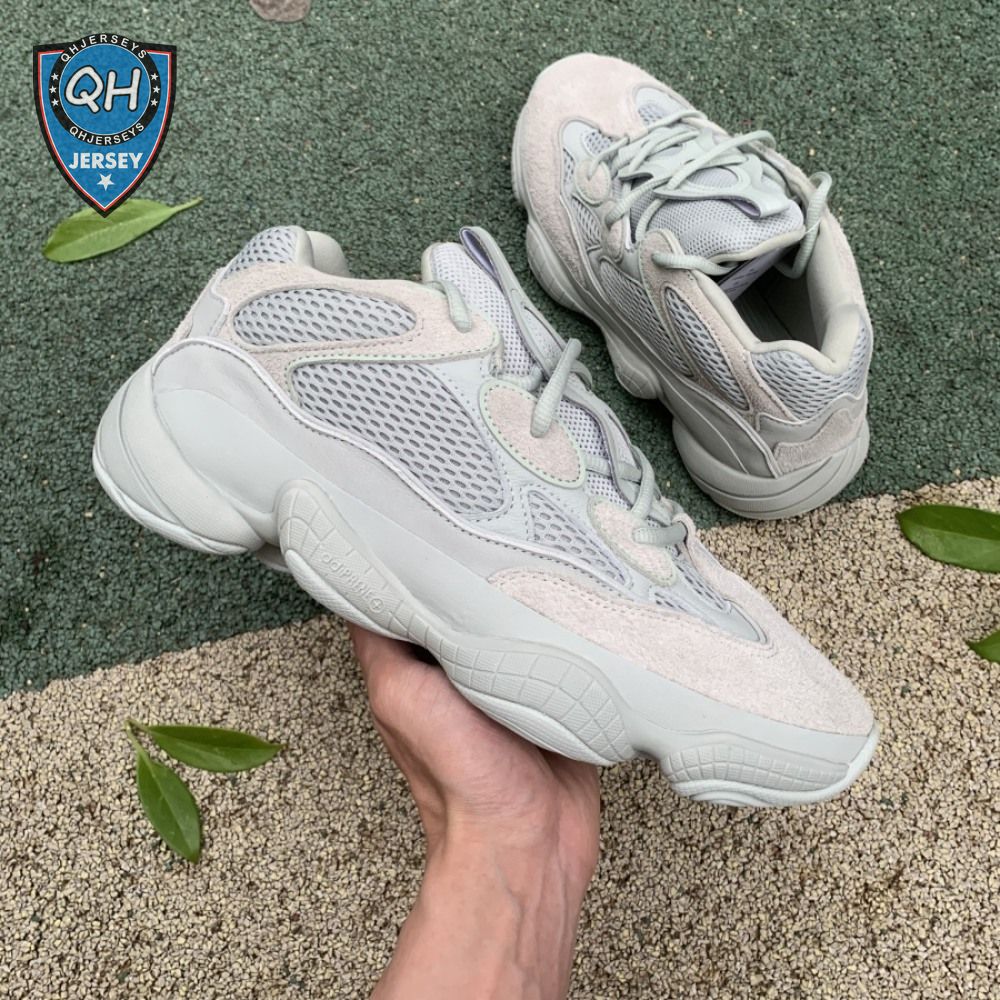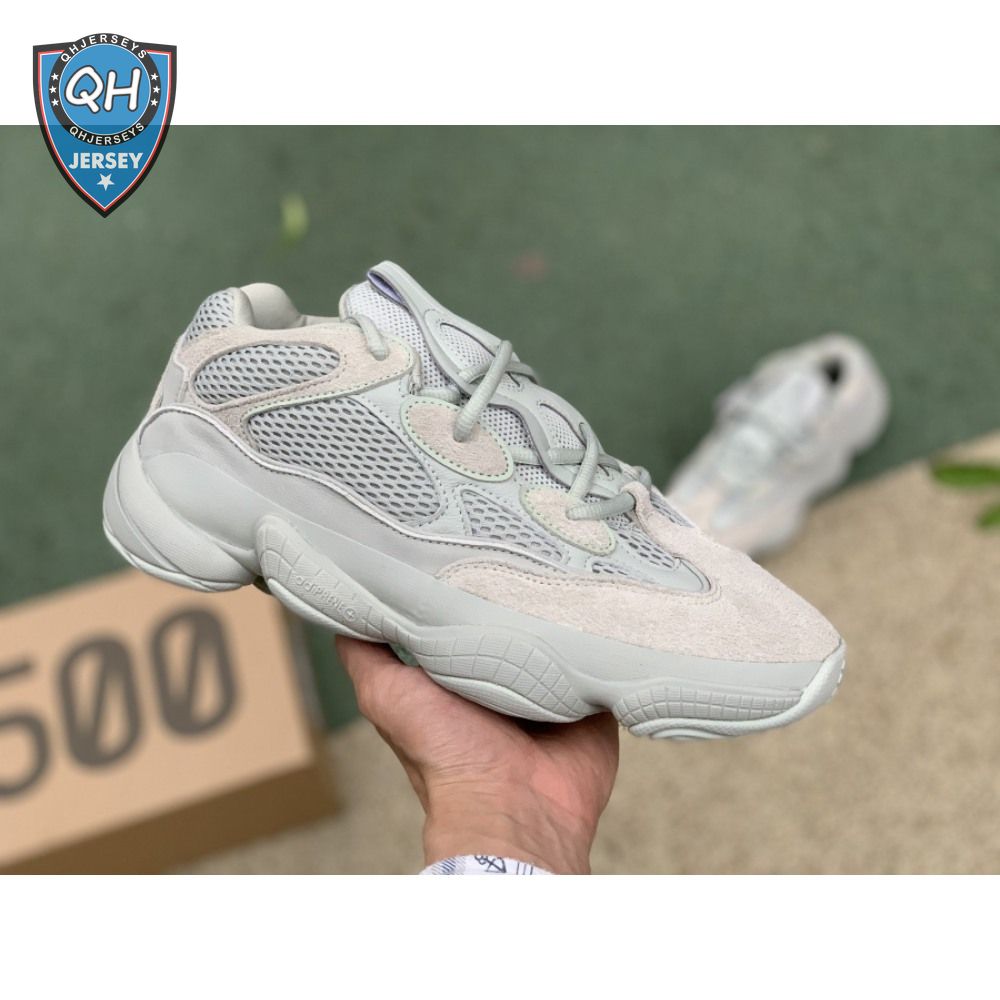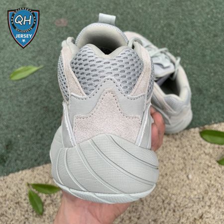 The Yeezy 500 "Salt" sticks with the same monochromatic design used on previous colorways of the bulky lifestyle silhouette. Here, a light grey shade is applied to the layered upper, built with a combination of cow suede, premium leather, mesh and nubuck accents. A rubber wrap atop the midsole provides added durability while reflective trim around the eyelets provide visibility in low-light conditions.