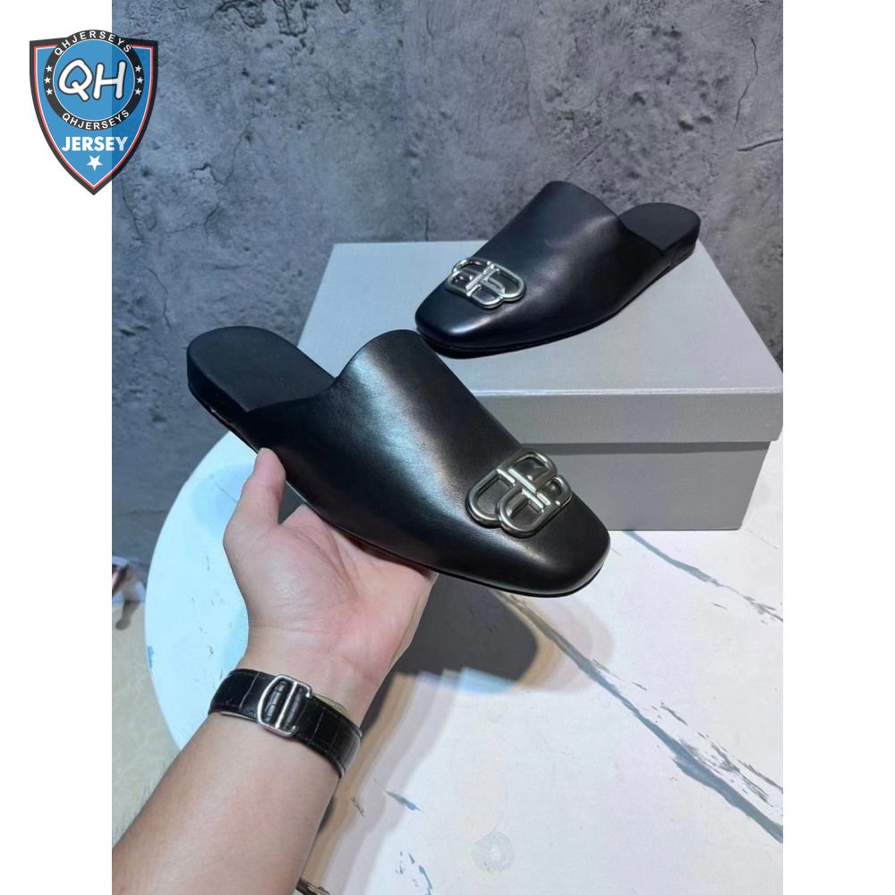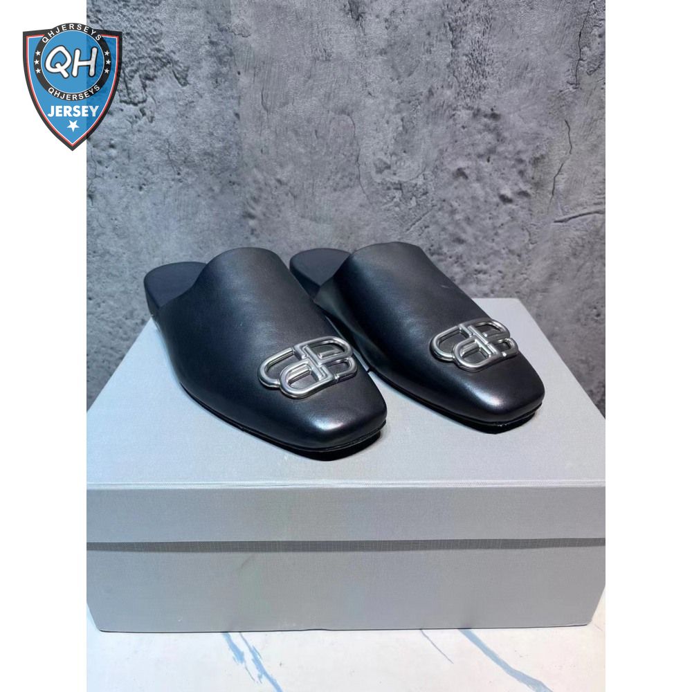 Balenciaga Cosy BB-Logo Mules in Smooth Calfskin