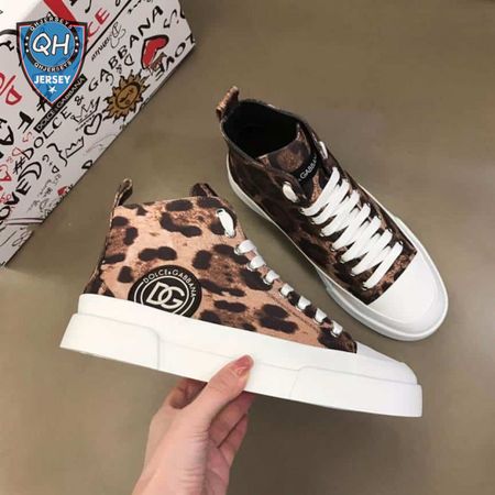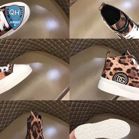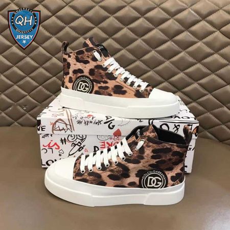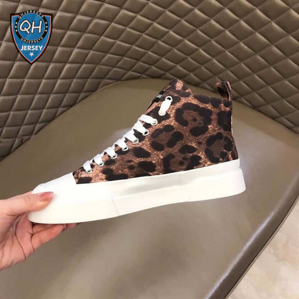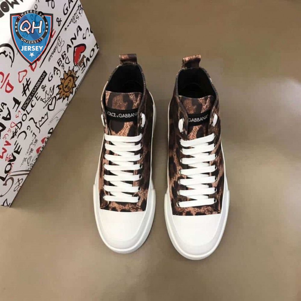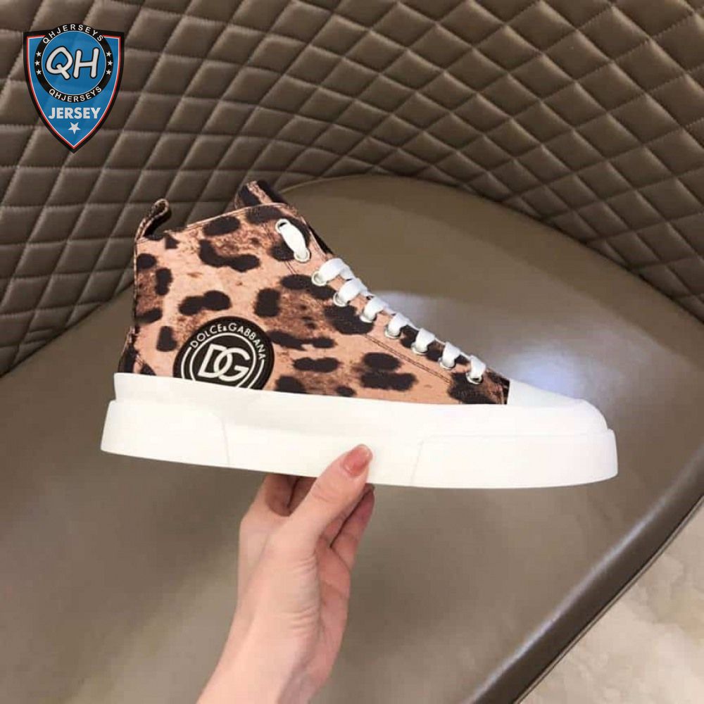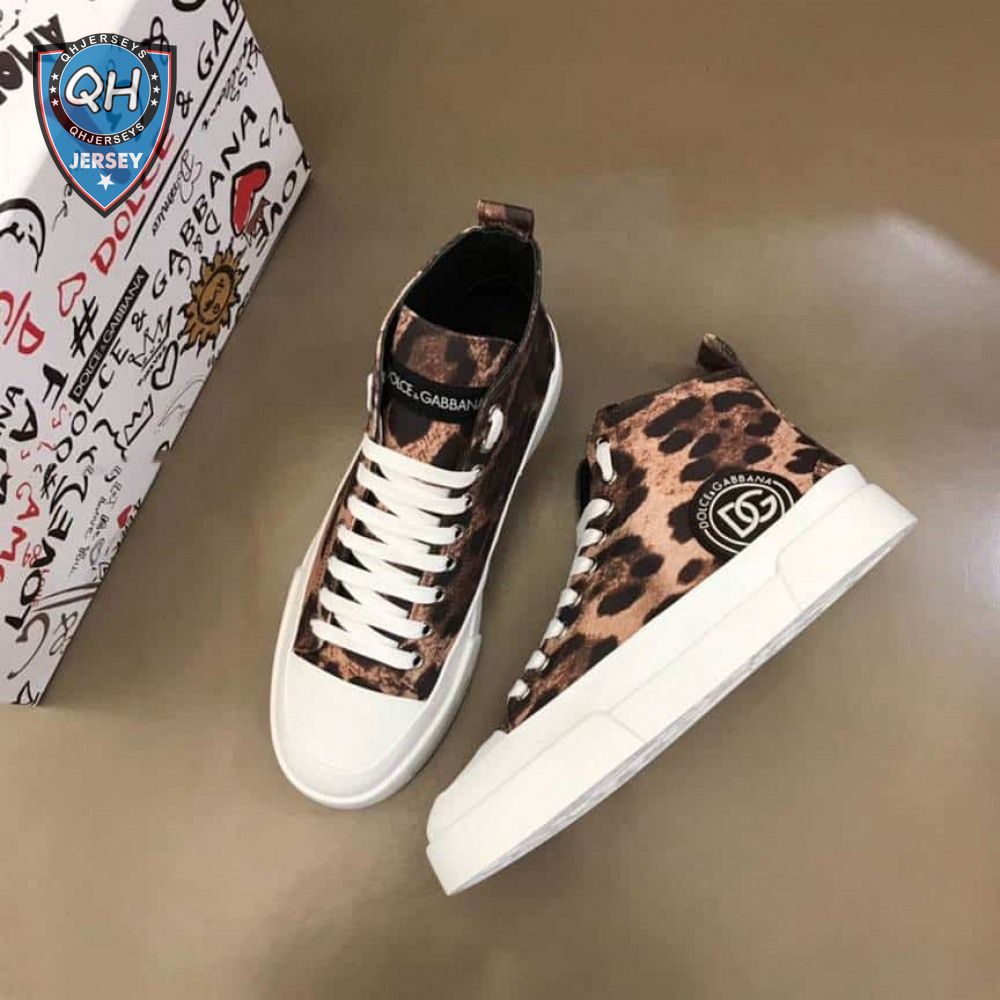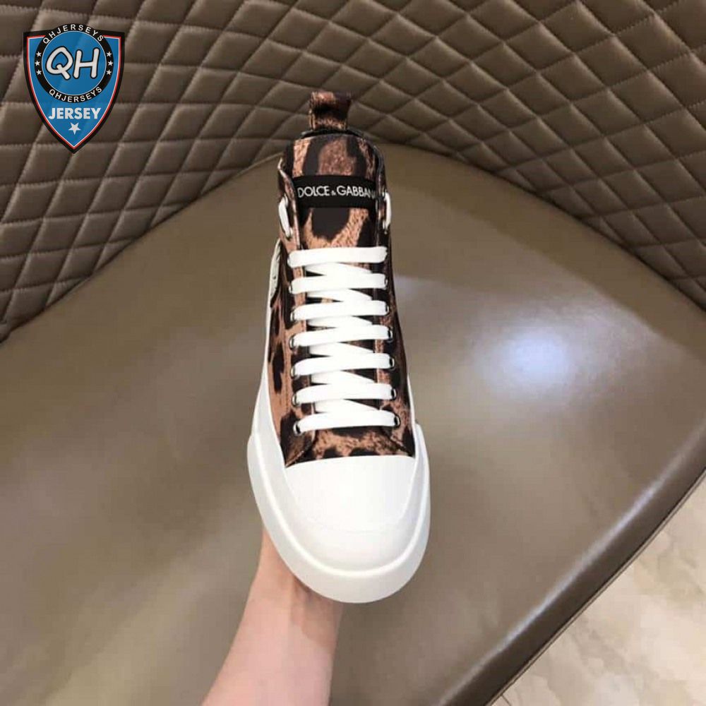 DOLCE AND GABBANA COTTON DRILL PORTOFINO LIGHT MID-TOP SNEAKERS WITH LEOPARD PRINT - DG110