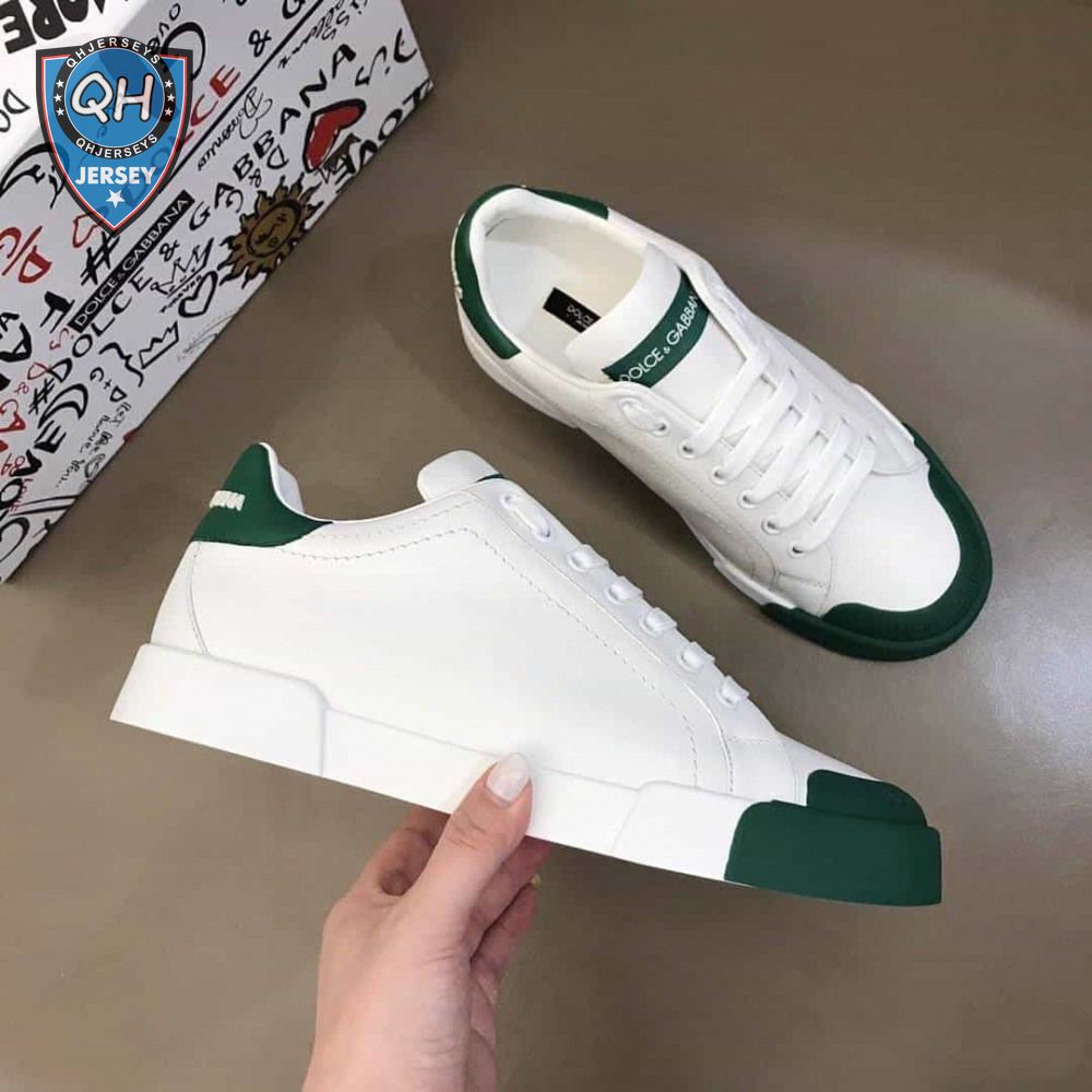 DOLCE AND GABBANA LOGO PRINT POSITANO LEATHER SNEAKERS - DG94