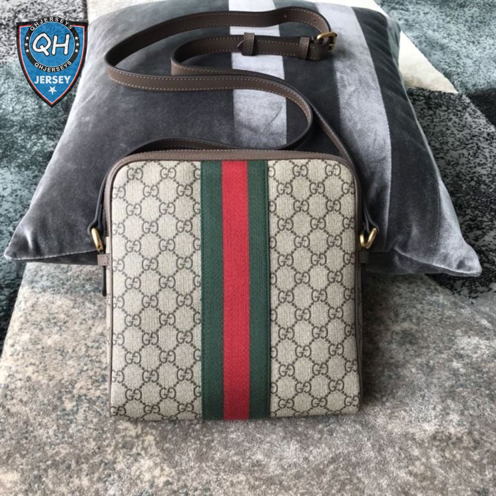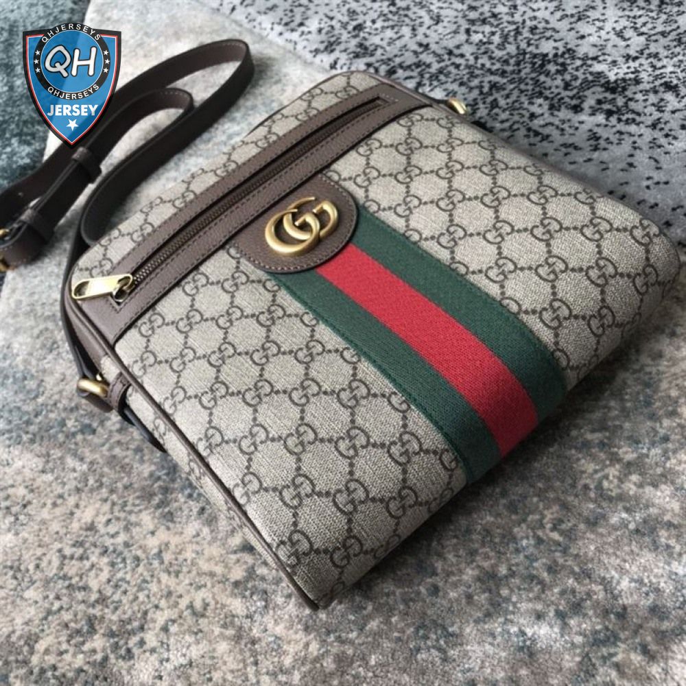 Gucci Messenger Bag Beige/Ebony Gg Supreme Canvas Brown Leather Trim GMB008