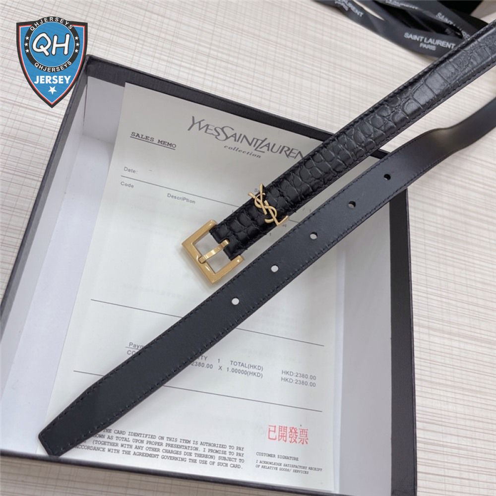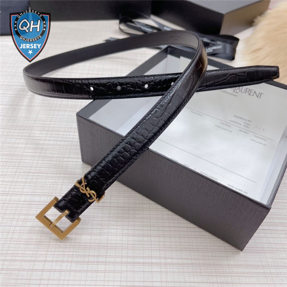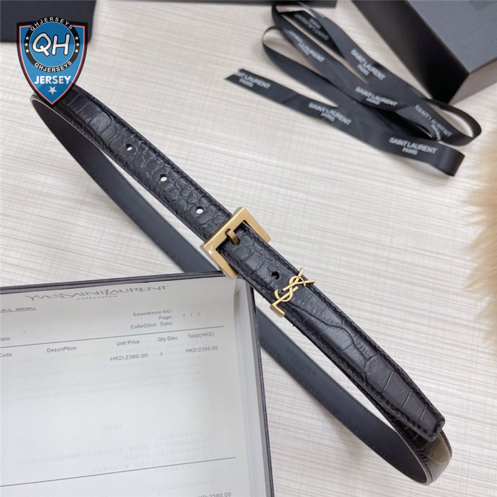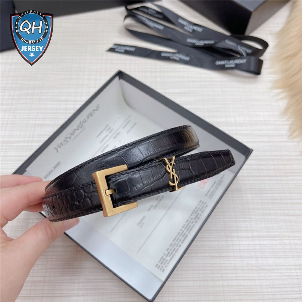 ysl crocodile grain top layer leather belt