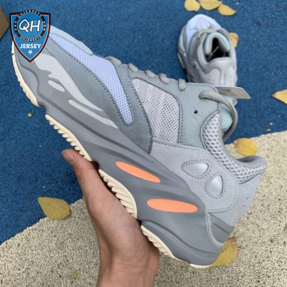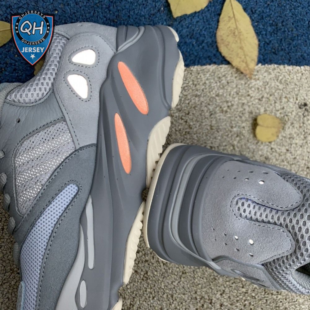 The adidas Yeezy Boost 700 "Inertia" is part of the Yeezy Season 8 lineup that launched March 2019. The "Inertia" colorway showcases the original 700 upper, with a heavily paneled construction made with premium suede, mesh and smooth leather sections. Cast primarily in cool grey tones, the sneaker includes hits of Tangerine for contrast. The shoe"s signature chunky midsole is equipped with full-length Boost cushioning for responsive comfort.
