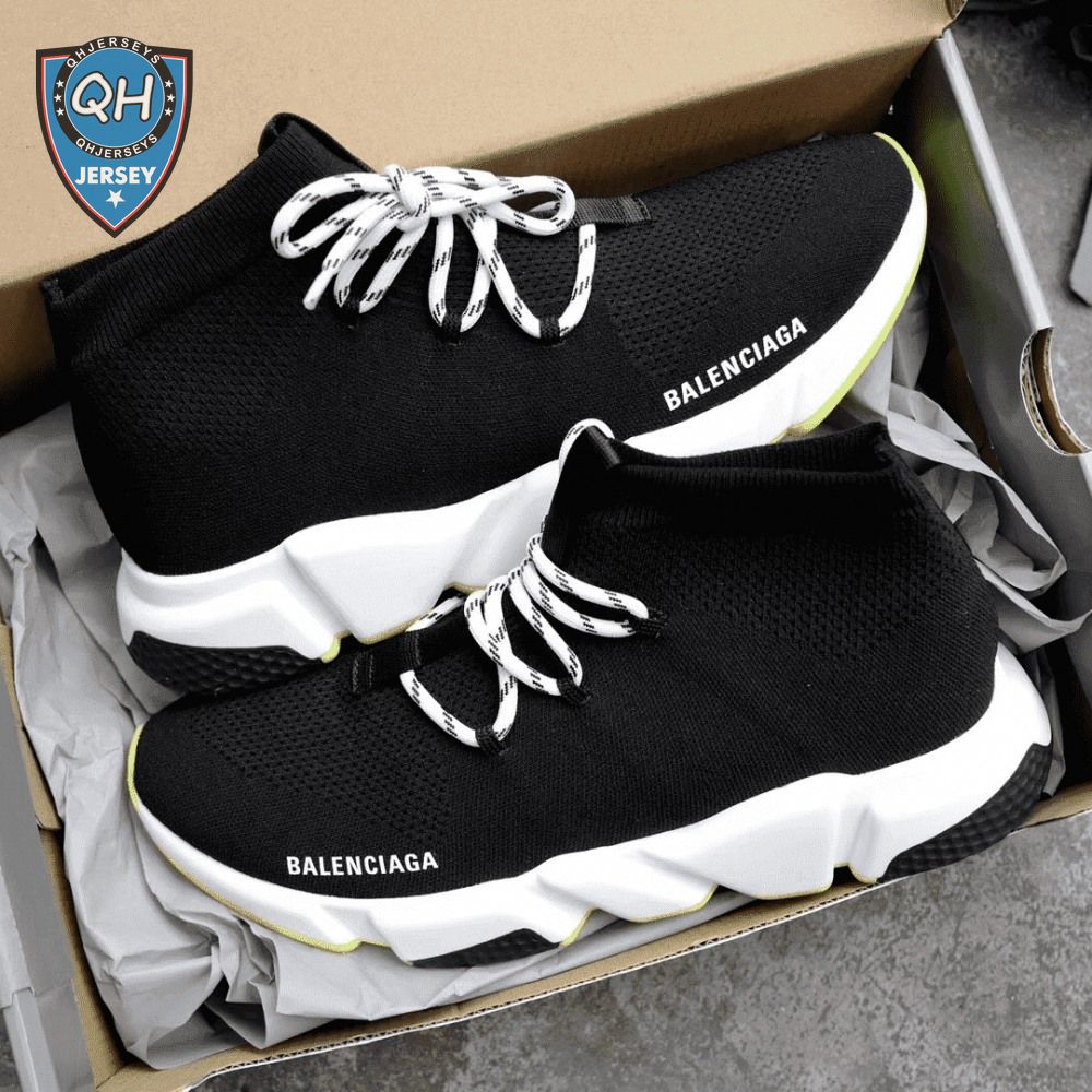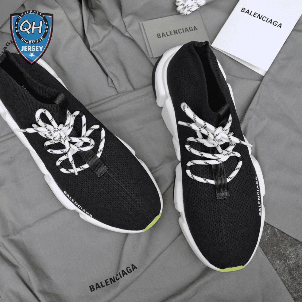 BALENCIAGA SPEED TRAINER LACE UP BLACK WHITE - BB16