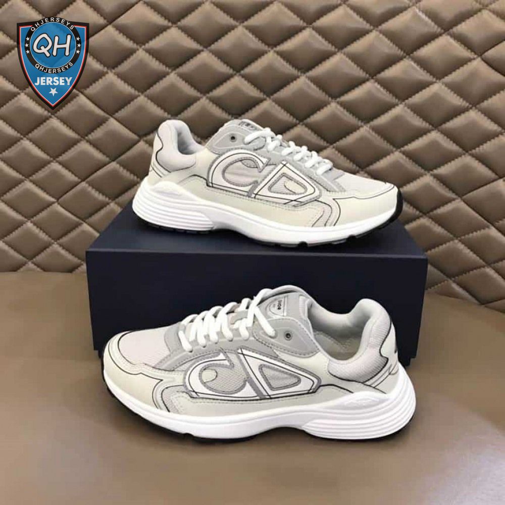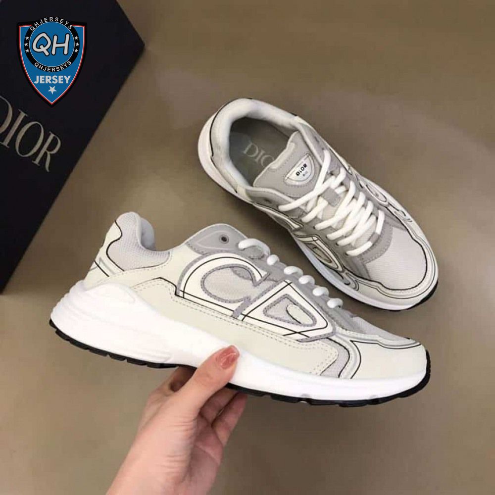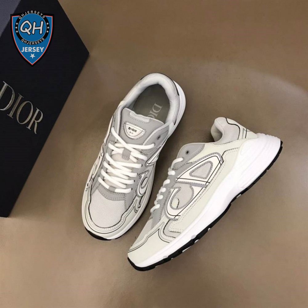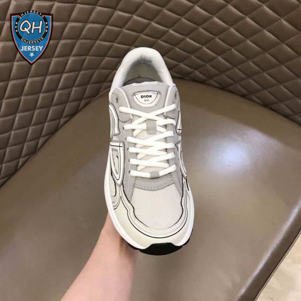 DIOR B30 SNEAKERS GRAY MESH AND WHITE TECHNICAL FABRIC - CD85