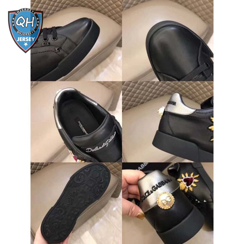 DOLCE & GABBANA CALFSKIN PORTOFINO SNEAKERS WITH PATCHES OF THE DESIGNERS - DG2