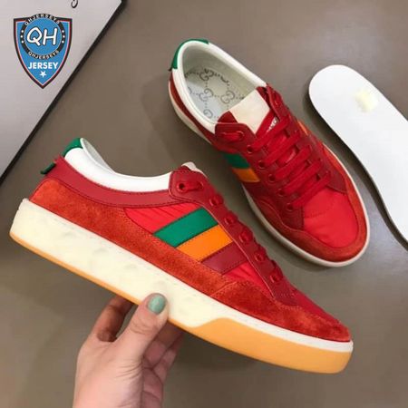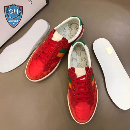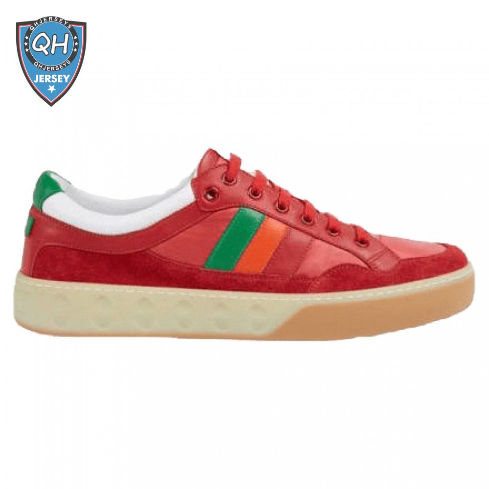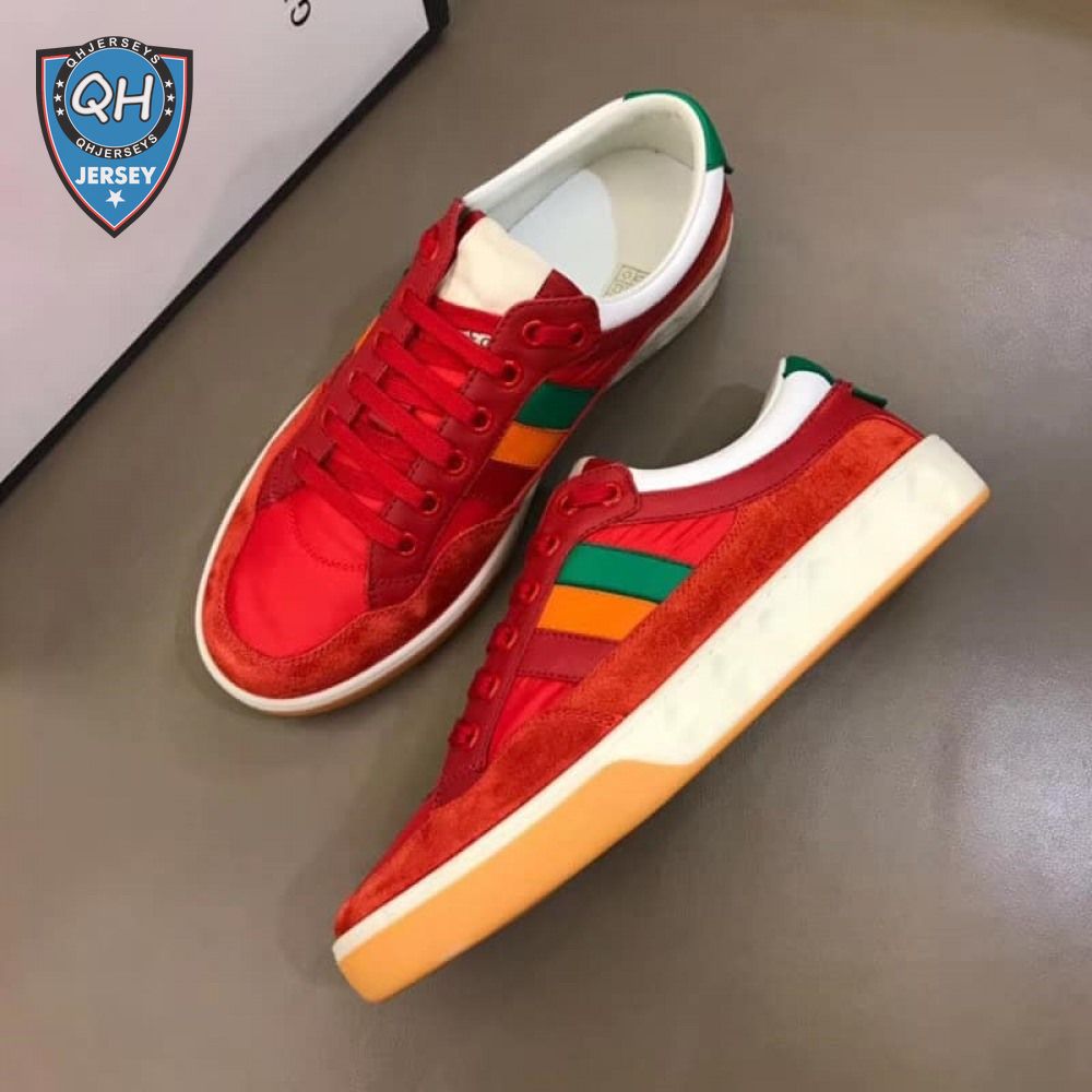 GUCCI MEN'S RED LEATHER AND NYLON SNEAKERS - GC62