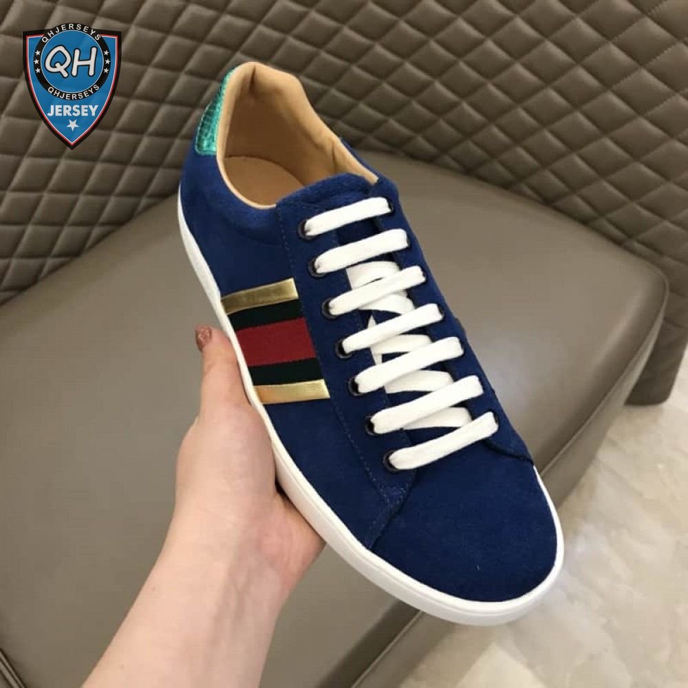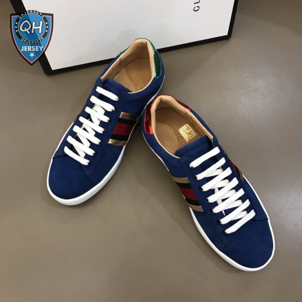 GUCCI ACE SNEAKER VELVET BLUE METALLIC STRIPE - GC40